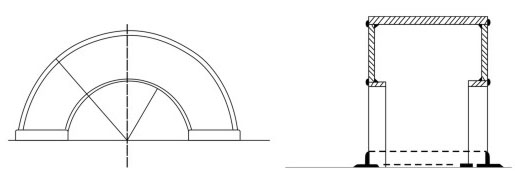 此地埋裝置為兩個半圓形中空組合而成,將橡膠接頭和管道平焊法蘭全部裝入體內,兩端安裝設有兩半圓形小平面帶鋼騎于兩側法蘭外管壁,兩端立面支撐根據土層深度而定,足以承受外壓負重。 該配置配有一定數量對合鎖緊螺栓,以備安裝完畢后裝配。其安裝方法為:安裝橡膠接頭→保護裝置內涂瀝青防銹染→安裝下部1/2保護裝置→放上上部1/2保護裝置→旋緊對合鎖螺栓(注意安裝時要使橡膠接頭確保處于裝置中心位置)→保護裝置外涂瀝青防銹柒→回填原土,下部搗實,上部夯實→三合土和墊層→鋪設地面(最好在適當位置設有永久性標志,以備以后檢查更換時確定位置)